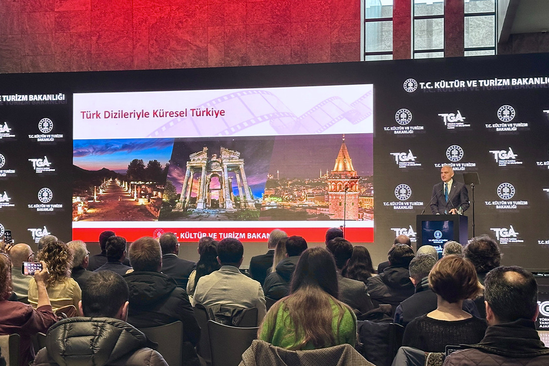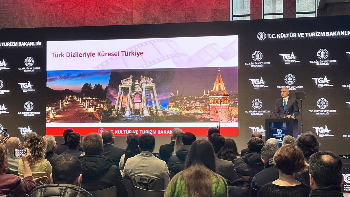 Türkiye'nin tanıtımına katkı sağlayan, en az 3 kıtada ve 10 ülkede yayınlanan dizilerimize destek sağlayacaklarını söyleyen Bakan Ersoy, " 65 milyar 231 milyon dolar turizm geliri, 64 milyon seviyesine gelmiş ziyaretçi sayısıyla Türkiye’yi bugün gelir miktarıyla dünyanın 7’nci,ağırladığı ziyaretçi sayısıyla dünyanın 4’üncü büyük turizm ülkesi konumuna getirdik. Bu rakamları her yıl daha da yukarıya çekmek için çalışıyor, bunu yaparken özgün ve farklı enstrümanları kullanarak projeler üretmeye özen gösteriyoruz. Bugün de bu bakış açısıyla dizilerimizi yeni nesil tanıtım vizyonumuzun lokomotifi yapıyoruz. Türkiye'nin tanıtımına katkı sağlayan, en az 3 kıtada ve 10 ülkede yayınlanan dizilerimize, Sinema Genel Müdürlüğümüz ve Türkiye Turizm Tanıtım ve Geliştirme Ajansı (TGA) ile destek sağlayacağız. Bu kararı vakit kaybetmeden, bu yıl itibarıyla uygulamaya başlıyoruz" diye konuştu.