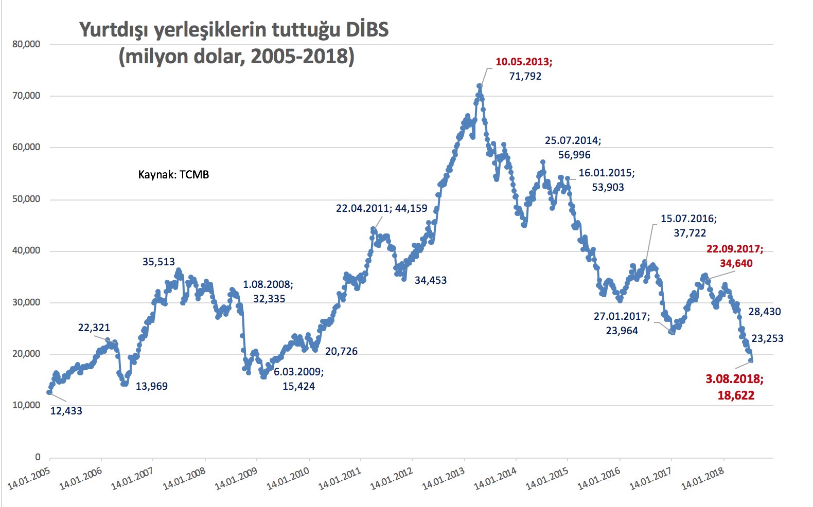 -altın hariç- döviz rezervleri:79.148 milyar dolardan 72.924 milyar dolara indi.