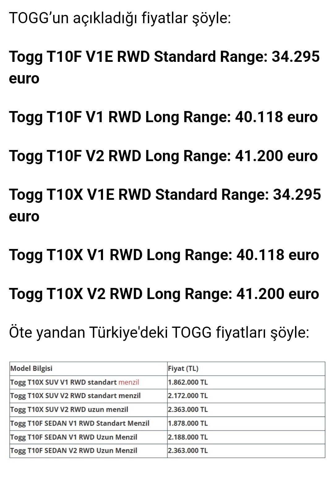 TOGG’un Almanya’da bu fiyatlarla satılıp satılamayacağı konusuna gelirsek; Almanya gibi rekabetin yoğun, markaların oturmuş olduğu bir pazarda TOGG'un bu segmentte şansı oldukça düşük. Zira orada benzer donanımlara sahip, köklü markaların elektrikli araçlarını (örneğin VW ID.4, Hyundai Ioniq 5, Tesla Model Y vb.) daha uygun fiyatlara almak mümkün. Üstelik bu araçların satış sonrası hizmet ağı ve tüketici güveni de daha yüksek.