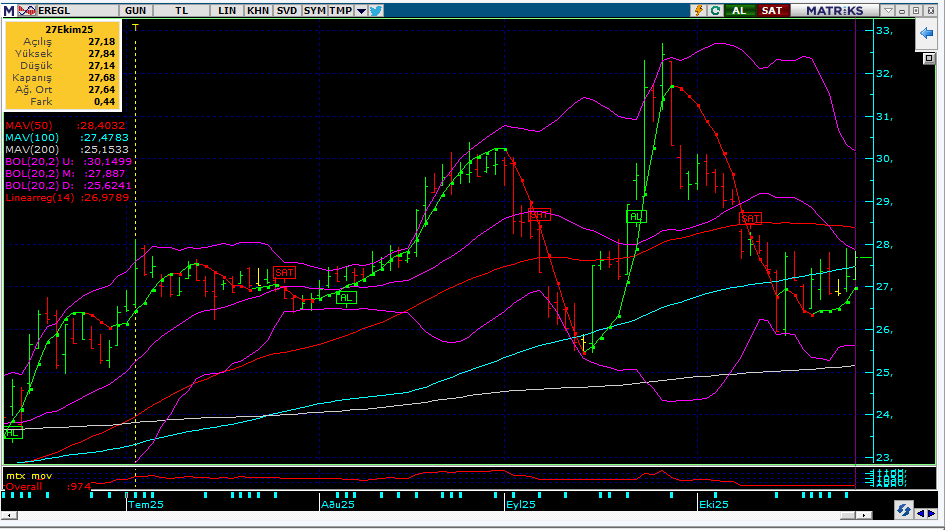 EREGL de Sistem Seanslıktan sonra Günlükte de AL vermeye başladı, yarında pozitif kapanış yaparsa AL verecektir, ama bugün BofA EREGL alsa da Spot da 4.7 mlyr satış yaptı, normal şartlarda yaptığı satışı azaltır/kapanırdı, bugün yapmadı! önceden haberi alan BofA bir olumsuzluk bekliyor olabilir! EREGL ise daha önceleri yaptığı gibi pozitif ayrışmaya devam ederse güzel olur![]()