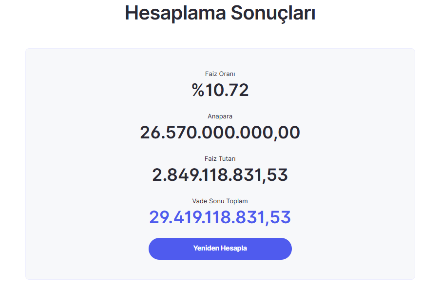 Sadece mevcut başvuru sayısının ödediği kaporaları, kuranın hemen ertesi günü geri ödeseler, Yıllık %40 üzerinden günlük bileşik faizi: