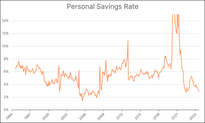 Amerikan kumbarası boşta çalışıyor. Hanehalkı mali sağlığı için endişe verici bir işaret olarak, Temmuz 2024'teki son veriler, Amerika Birleşik Devletleri'ndeki kişisel tasarruf oranının yalnızca %2,9'a düştüğünü ortaya koyuyor. Bu rakam, geçen yılın aynı dönemine kıyasla %34,1'lik keskin bir düşüşü temsil ediyor ve Amerikan ailelerinin karşı karşıya olduğu ekonomik baskıların çarpıcı bir resmini çiziyor. Hanehalklarının ayırdığı harcanabilir gelirin yüzdesini ölçen kişisel tasarruf oranı, %5,8'lik 30 yıllık ortalamanın çok altına düşerek tüketici davranışında ve finansal kapasitede önemli bir değişime işaret ediyor. Bu aşağı yönlü eğilim, birçok Amerikalının mali tamponlarını korumakta zorlandığını ve potansiyel olarak onları ekonomik şoklara veya beklenmeyen harcamalara karşı savunmasız bıraktığını gösteriyor. Kredi kartı gecikme oranlarındaki son artışlarla birlikte değerlendirildiğinde, tasarruflardaki bu düşüş tüketici mali istikrarı konusunda endişe verici bir tablo çiziyor. Tasarruf oranlarındaki sürekli aşınma, hanehalklarının cari harcamaları karşılamak için bütçelerini zorluyor gibi görünmesi ve gelecekteki planlama veya acil durum fonları için çok az yer bırakmasıyla daha derin ekonomik sorunlara işaret ediyor olabilir. Tüketicinin son bir yılda nasıl değiştiğini gördünüz mü?