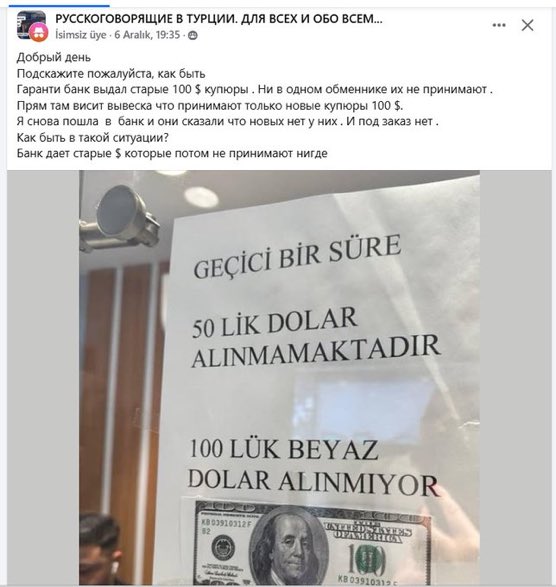 "Garanti Bankası, Rus turiste beyaz (Eski) 100 dolar veriyor."