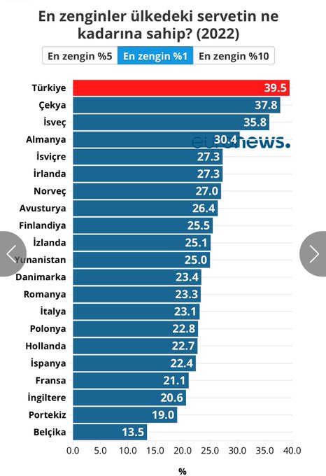 Türkiye’de en zengin % 1’lik kesim servetin % 39,5’ine sahip.