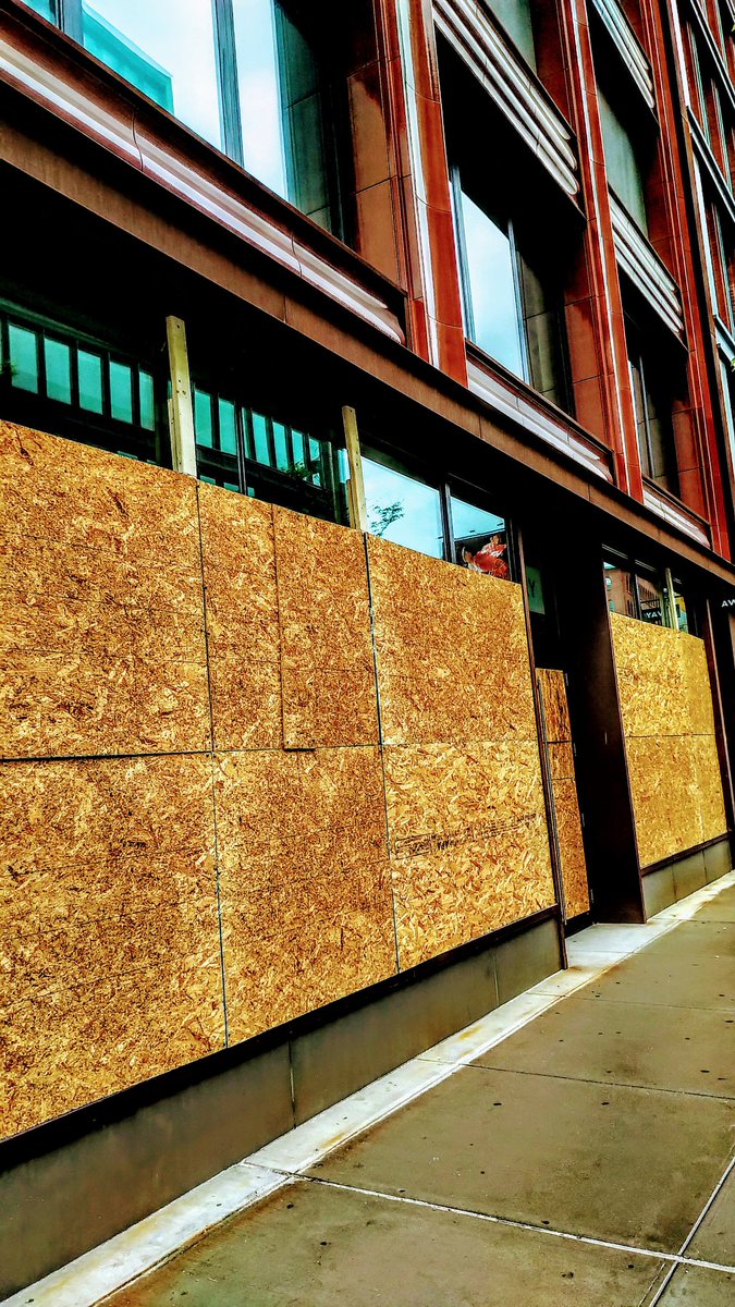 New York'ta lüks mağazaların bulunduğu sokaklarda işyerlerine bariyerler yerleştirilmiş. Yağma beklentisi var.