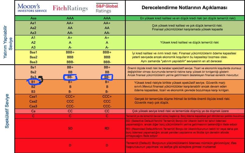 ve nihayet Türkiyeyi değerlendiren Rating kurumlarının not görünümleri aynı seviyeye geldi