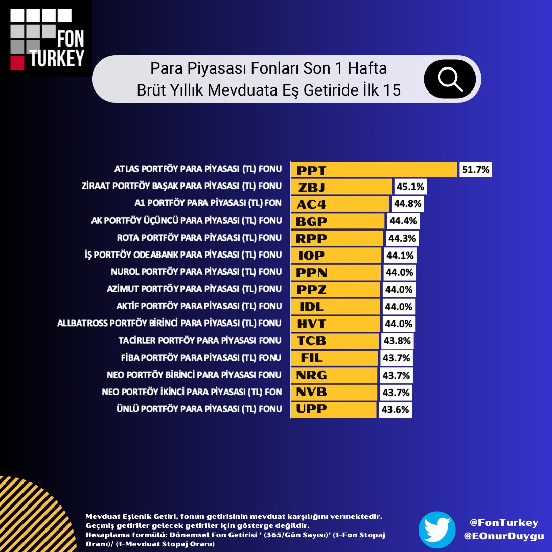 (Fonun ilgili dönem getirisi) * 365 / (İlgili dönem gün sayısı) * (1- Fon Stopaj