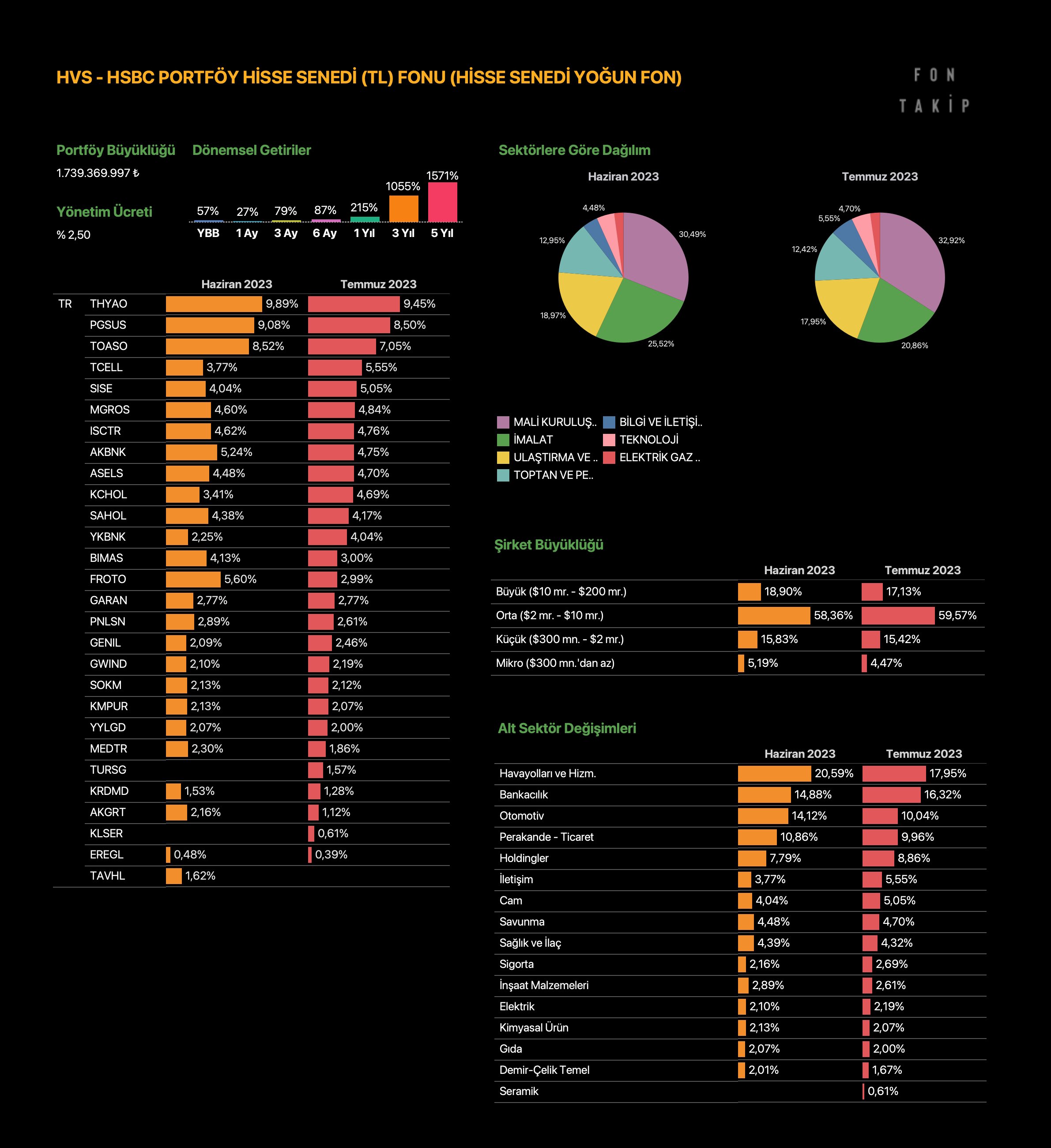 HSBC'nin fonunda Temmuz ayinda hem Sise'de hem Is Bankasinda artis olmus. Akbank azaltmis, Garanti sabit kalmis.