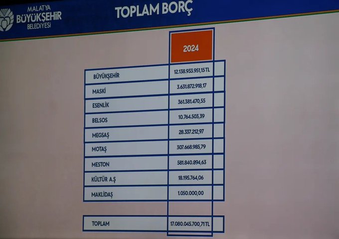 geçen sezondan devir belediye borcu 17 milyar ,eski parayla 17 katrilyon....
