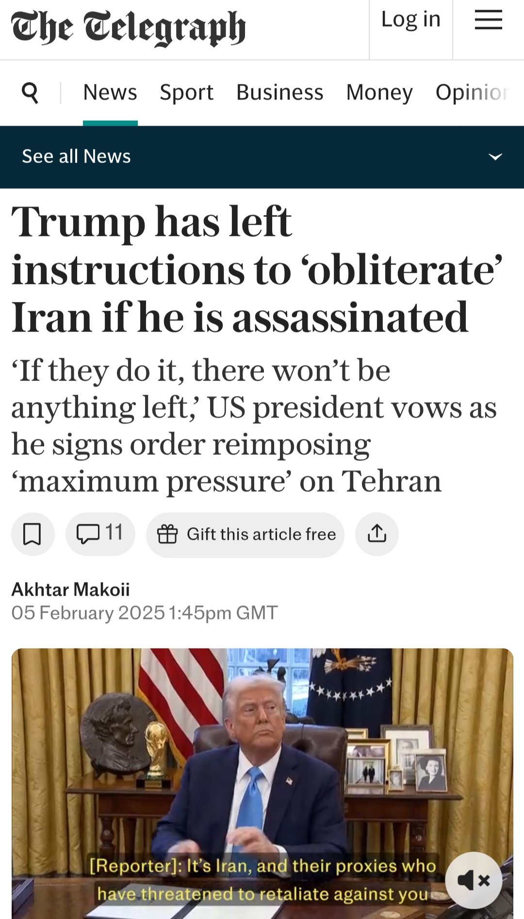 İran'ın yok edilmesi için talimat verdim. Böyle bir şey yaparlarsa, İran'dan geriye hiçbir şey kalmaz."