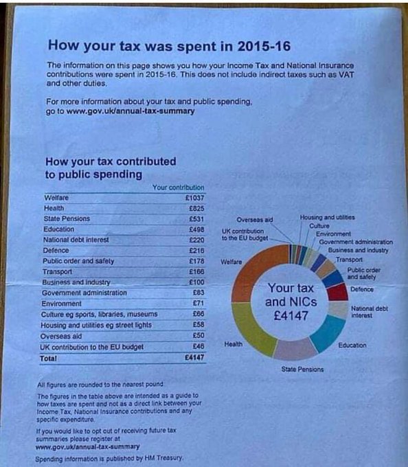 İngiltere'de ödediğin vergiden sonra vergilerinin nereye gittiğini görebildiğin belge alabiliyormuşsun.