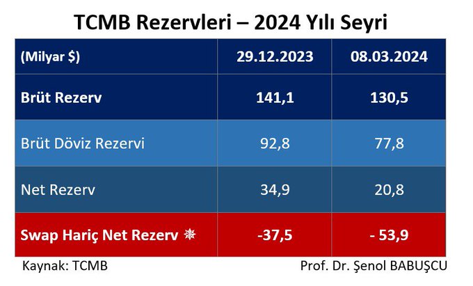 Merkez Bankası net rezervi (swap dahil) yıl sonuna göre 14,1 milyar dolar azaldı.!!!