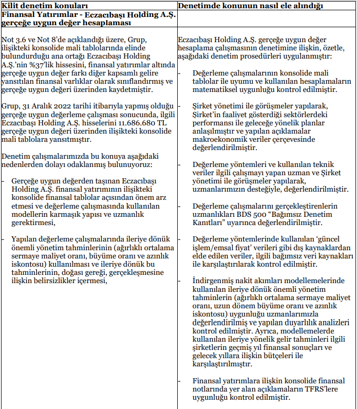 Aciklanan sonuçlara göre Eczacıbaşı tarafı olduğu sözleşmelere uymuş, gerçeğe uyan mali sonuçlar ve özenli hazırlanmış faaliyet raporu ile bu durumu teyit etmiştir.