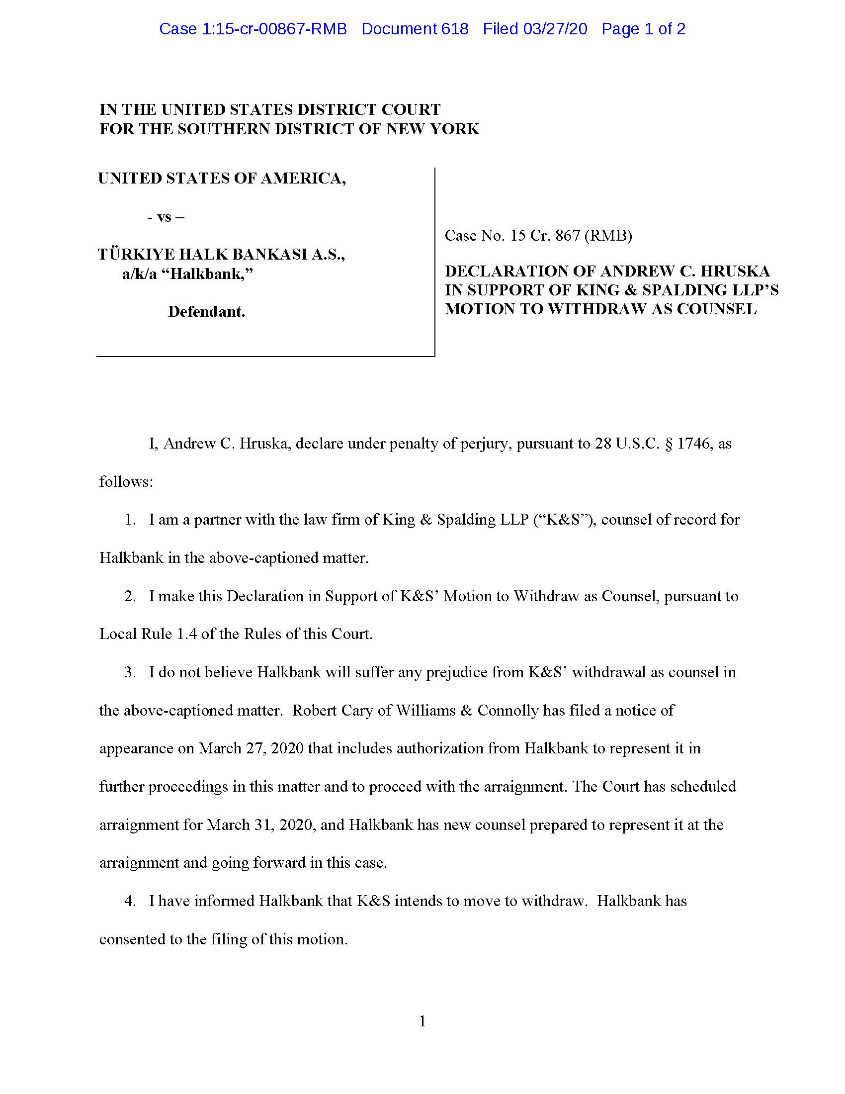 Bizzat Halkbank tarafından yetkilendirildi. Bu karar ile bence ABD de banka adına savunma yapacak en iyi hukuk firması seçilmiş oldu