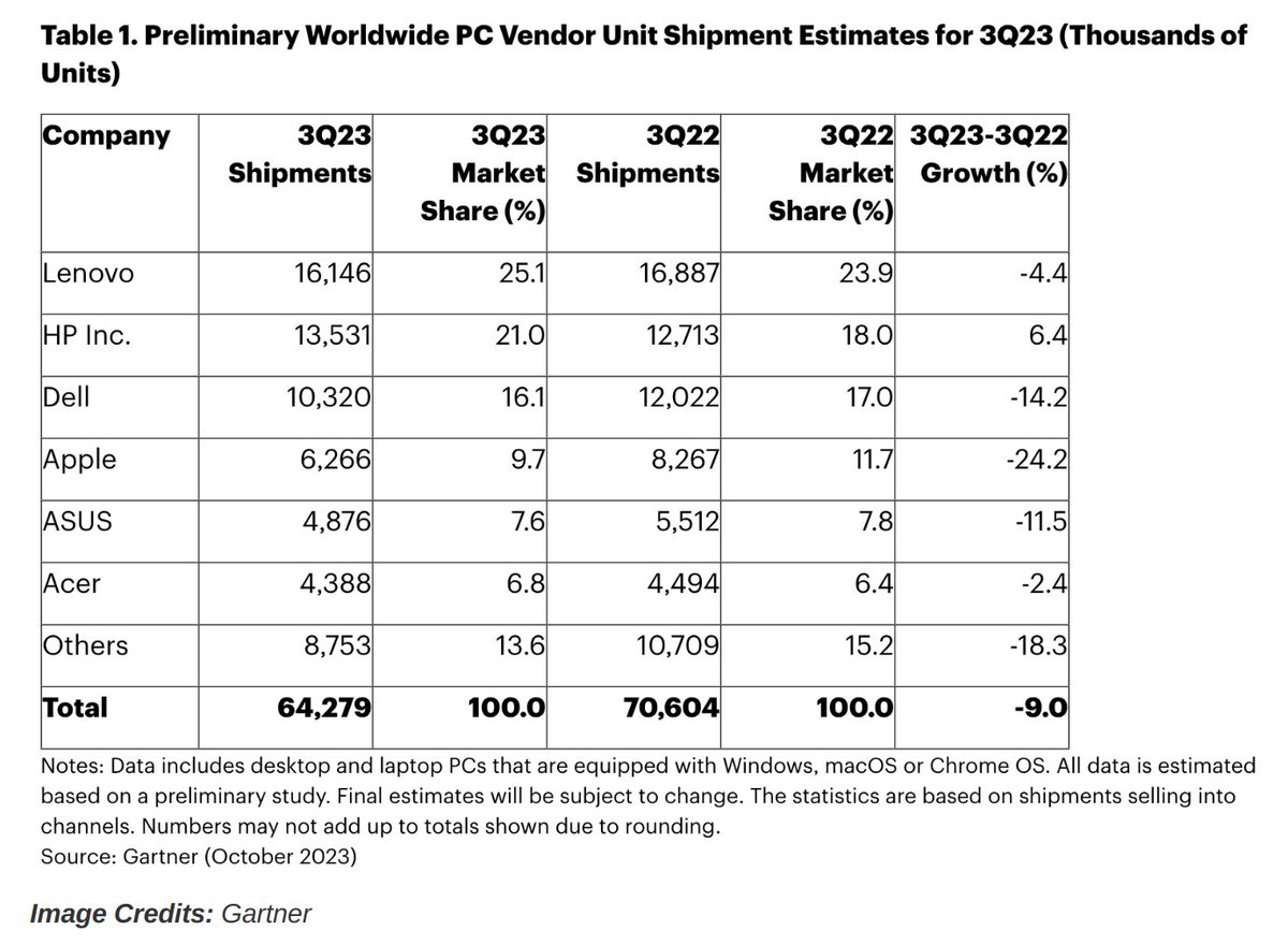 MacBook satışları geçen seneye göre %25 düşmüş. Ayrıca bütün markaların satışları da ciddi oranda gerilemiş.