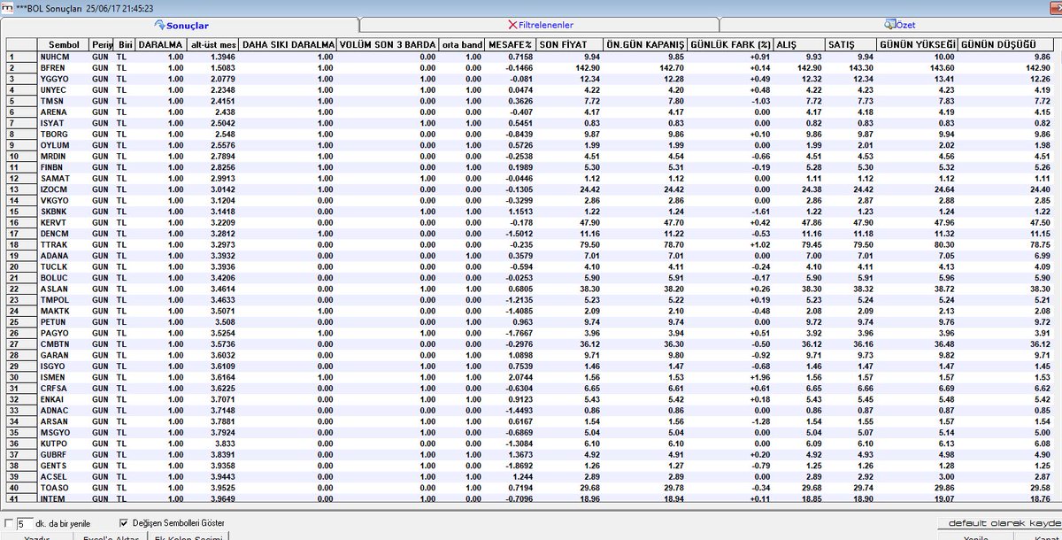 #bollinger daralmış hisseler