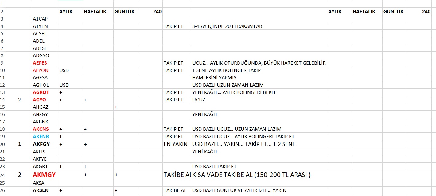 görüldüğü üzere A harfinde kısa vadede bulaşılacak hisse çıkmamış