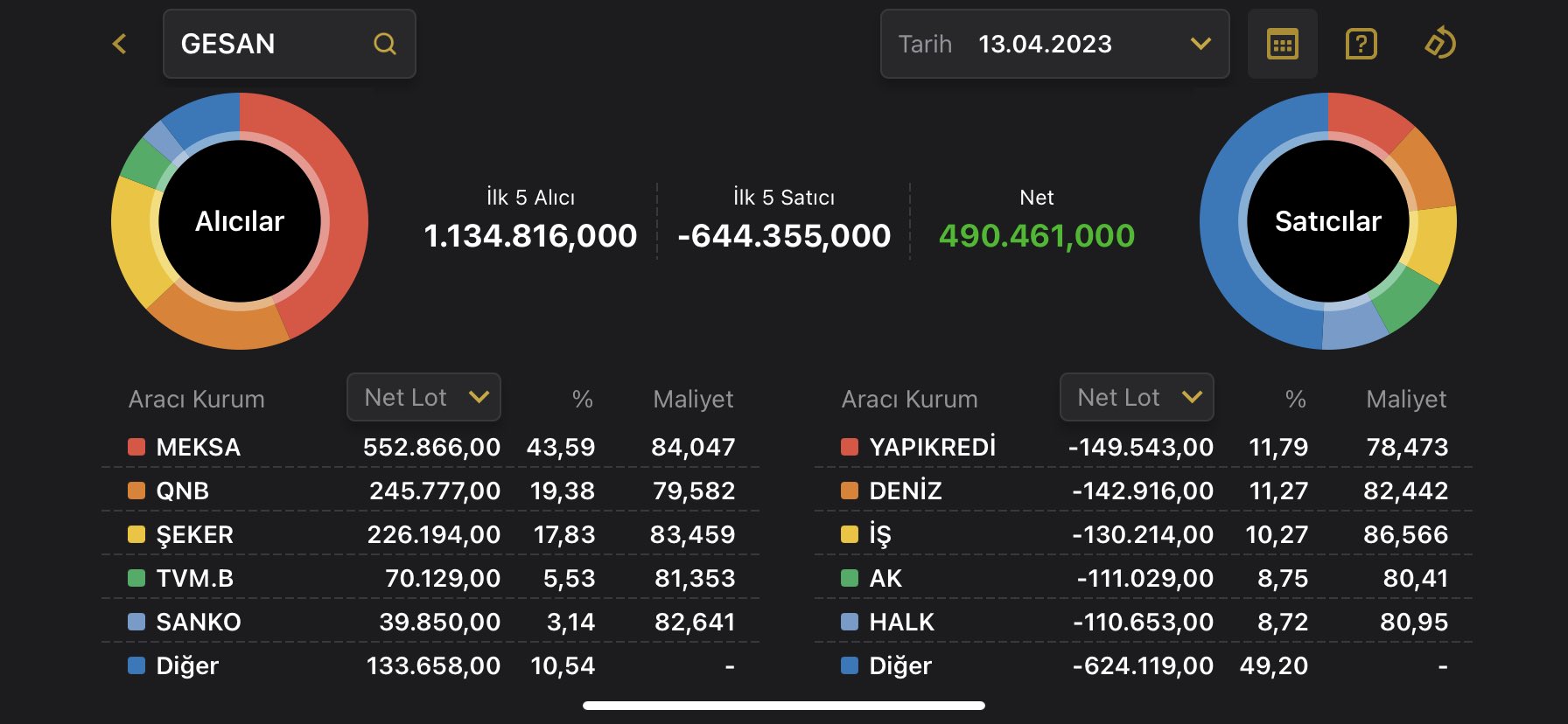 Kap haberi ile baktım çıkıp salmaya başladı ,bu kez lot sayısını arttırmak için. 79.80 den verdikYine ters köşe. Helal olsun gesaniler