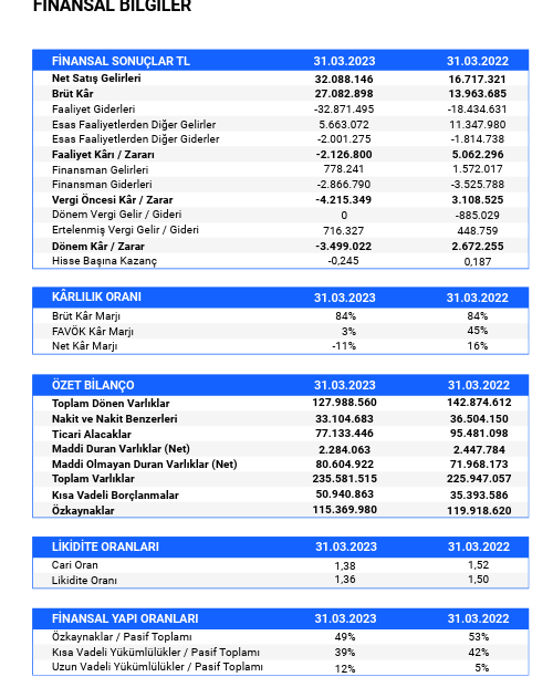 ''Ağırlıklı olarak yabancı para ile ürün ve hizmetlerini fiyatlayan şirketimiz Amerikan dolarının değer kazanmaması sonucunda 2023 yılının ilk çeyreğindeki tüm pozitif gelişmelere rağmen net kârlılığını negatif olarak kapatmıştır. Bu sonuç daha önce açıkladığımız yıl sonu hedeflerinde bir değişikliğe gitmemize bir neden oluşturmamaktadır. Ayrıca faaliyet giderlerimiz de gelir artışından daha az bir