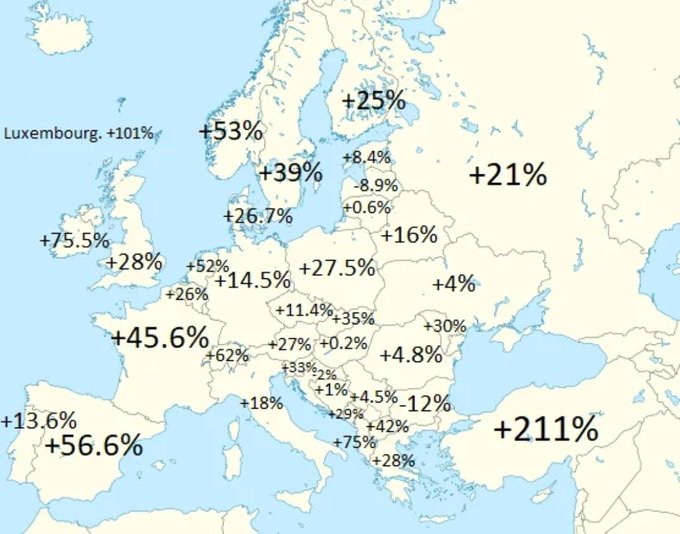 1960-2020 arasında Avrupa'da nüfus değişim oranları (Dünya Bankası)...