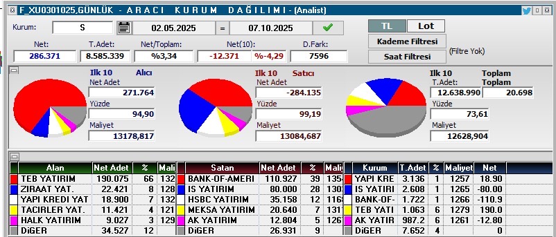 SPOT kapanış BofA satış tarafından alışa geçti, alışı da artırarak 1.5 mly yaptı, en iyi satıcı ve alıcı Diğer oldu, Tera gene kendi hisselerini aldı, alıcı tarafı iyi görünüyor,