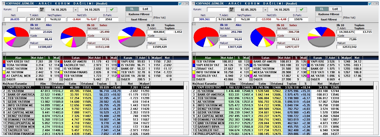 VİOP30 günlük ve toplam