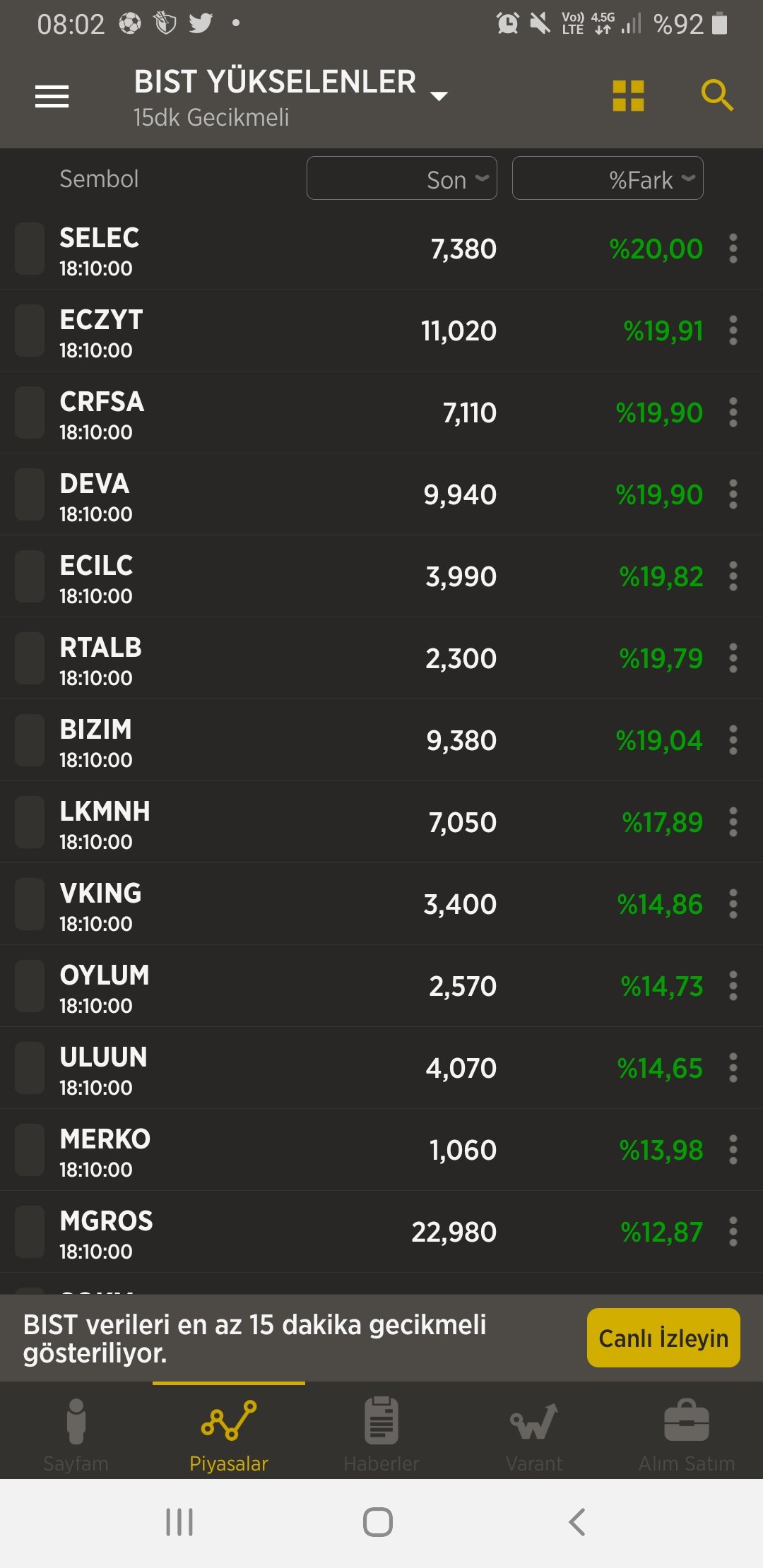 Tüm Hisseler