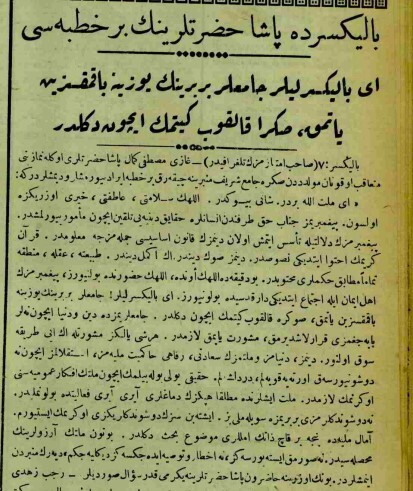 balıkesirde paşa hazretlerinin bir hutbesi