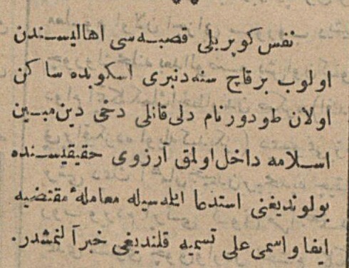 üsküpte oturan todor isimli genç bir çocuk müslüman olmuş ali ismini almış.