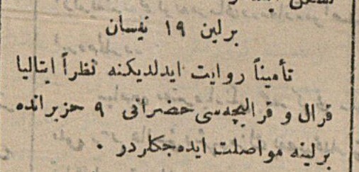 teminen (Güvenilir kaynaklardan) rivayet edildiğine nazaran - İtalya Kralı ve Kraliçesi Hazaratı 9 Haziranda Berlin'e muvassalat edeceklerdir.