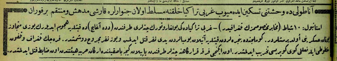 istanbul 10 şubat - (muhabiri mahsusamızın telgrafıdır) - garbi trakyadaki bulgar ve türk çeteleri tarafından (dedeağaç)-ta kışlaya hücum edilerek yüzü mütecaviz yunan askerini öldürmüşlerdir.