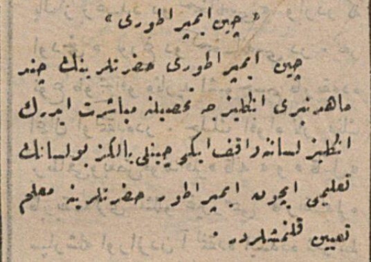 çin imparatoru hazretlerinin çend mahtan (bir kaç aydan) beri ingilizce tahsiline mübaşeret ederek,