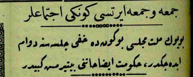 büyük millet meclisi bugünde hafi (gizli) celselerine devam edecektir,