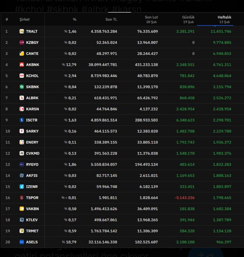 ASELS, EREGL ve GUBRF ilk ona girmesi lazımken yazılmıyorsa