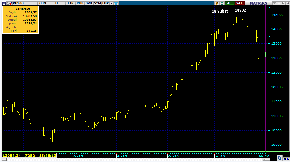 BİST100 de zirve 18 Şubat tarihinde 14532 olarak görünüyor,