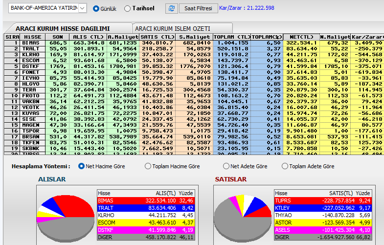 BofA nın aldıkları, BİMAS alıyor TUPRS KTLEV satıyor,