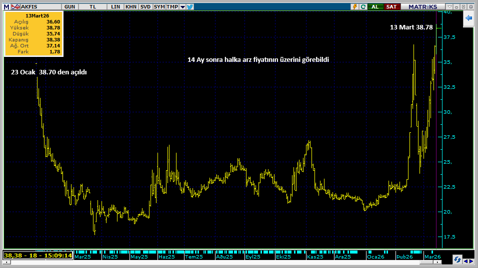 AKFİS Halka Arzdan 14 ay sonra açılış fiyatını geçebildi, açıldığı gün taban görmüştü,