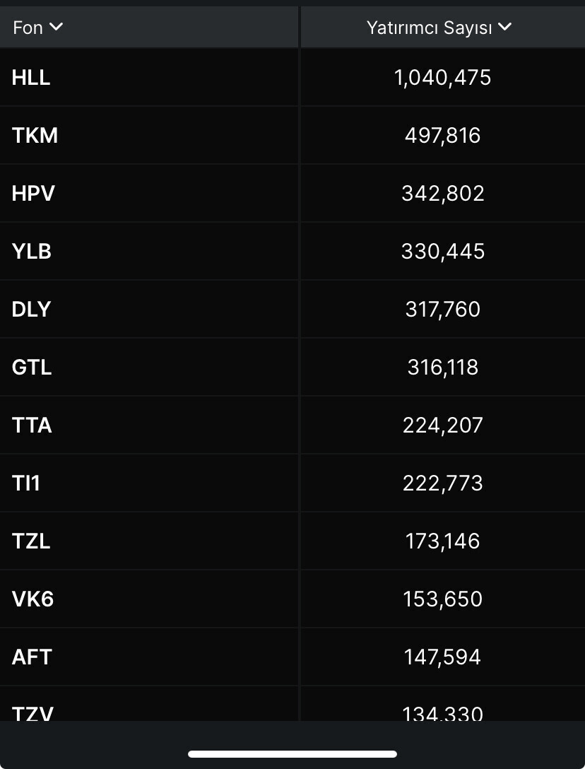 Fonlardaki Yatırımcı Sayıları