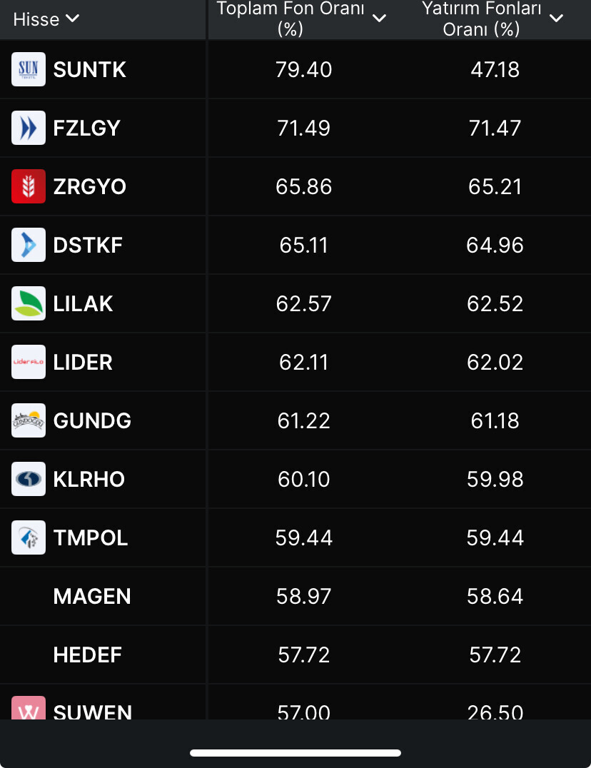 Fon Oranı En Yüksek Hisseler