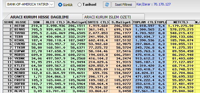 BofA nın aldıkları, ASTOR BİMAS THYAO alıyor, daha şimdiden 70 mlyn tl kar üretmiş,