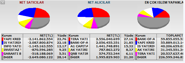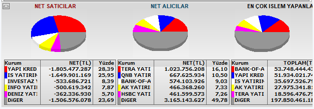 SPOT kapanış, BofA alışı artırdı, YapıKredi ve İş satışı artırdı, en iyi alıcı görünen Tera gene kendi hisselerini aldı, en iyi satıcı Diğer görünüyor,