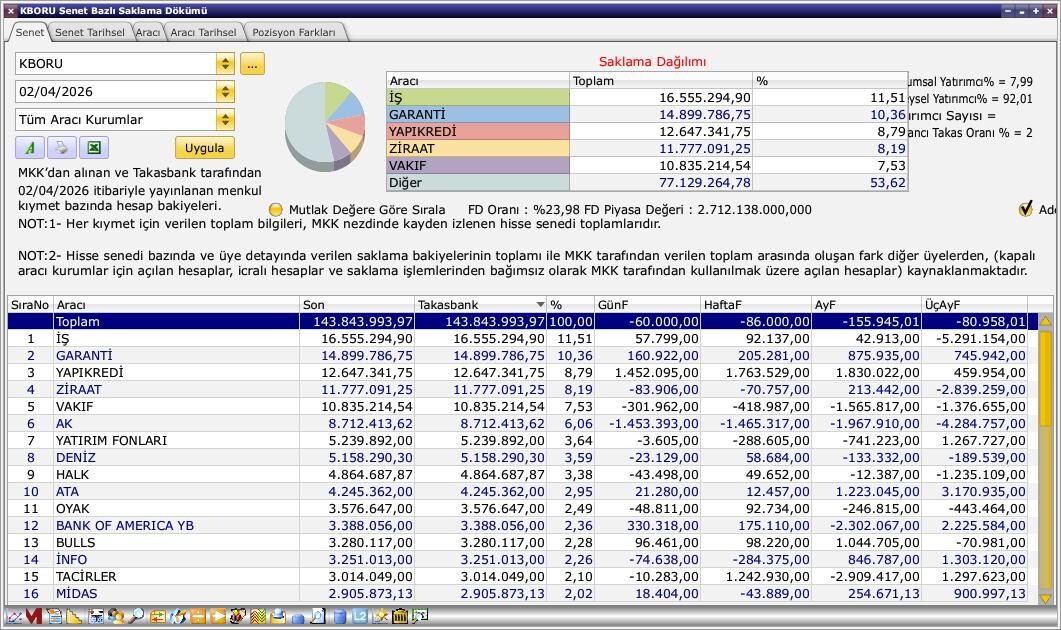 Geçen ay ortası, eskiden yatırımım olup bildiğim, anlık ucuz bulduğum tuclk şirketine, tek hisse riskini dağıtmak için kboru satıp yatırım yaptım. Sanki beni bekliyormuş gibi, tuclk önden, peşinden kboru da güzel getirilere doğru ilerlediler. Bugün biraz daha kboru satıp az miktarda tabana yakın seviyeden tnztp aldım. Hala portföyün amiral gemisi kboru. İnşallah uzun süre de olmaya devam edecek.