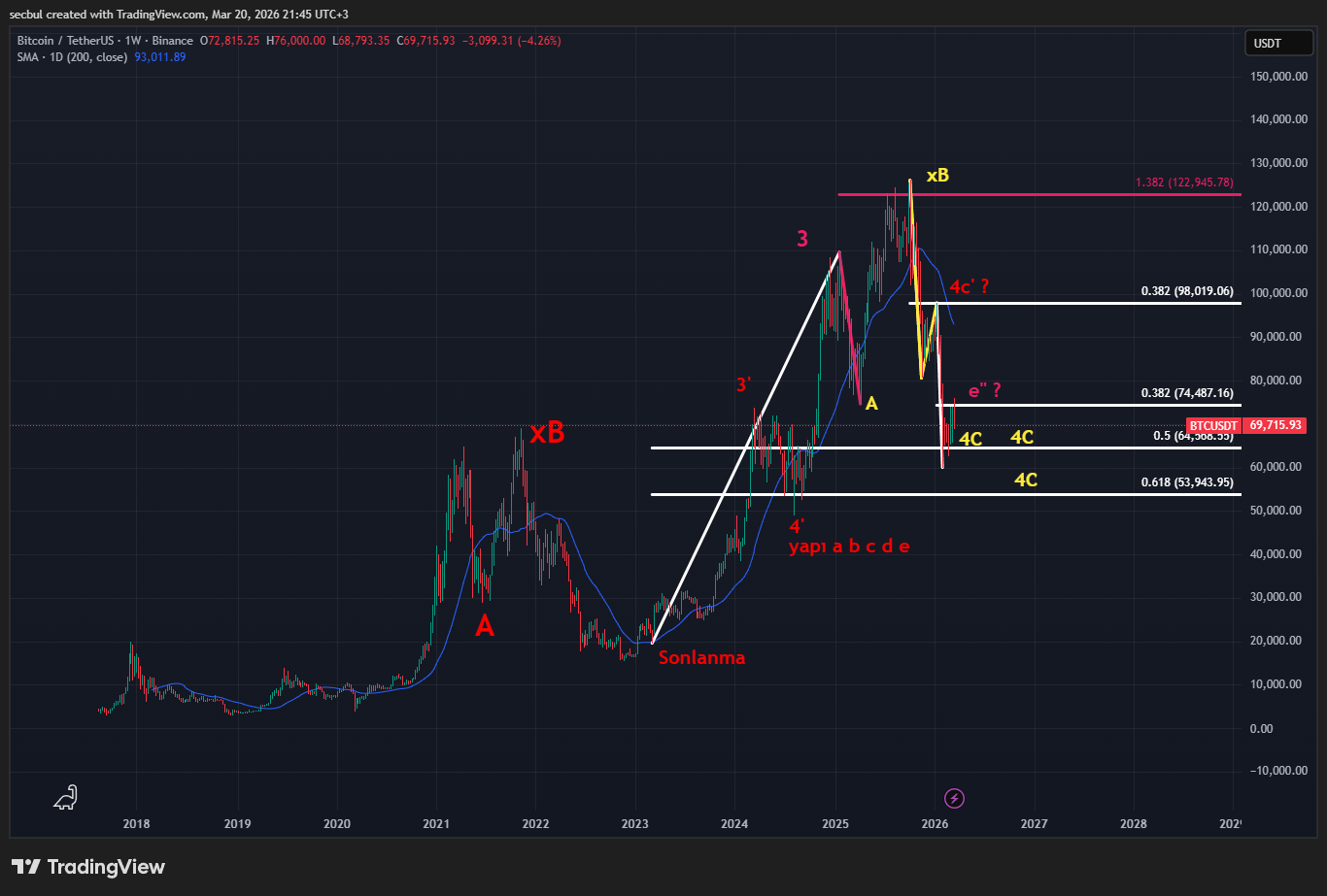 Neden zayıf btc. Çünkü gösterdiğim beyaz çizgi 38.2 ledi. Siz de çekip görebilirsiniz: