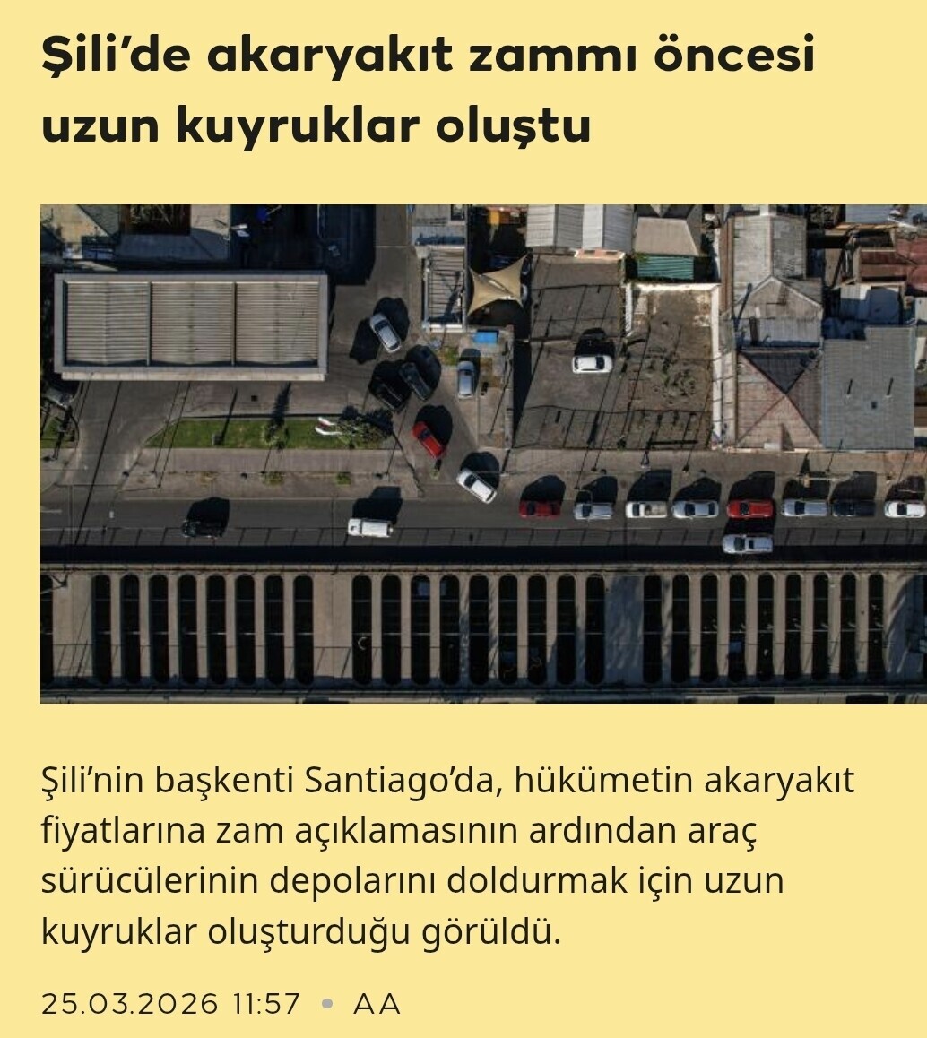6. Şili ekonomisine baktım GSYİH kişi başı 17 bin dolar gayme fakir değiller yani, bu fiyatlarla benzin/mazot bedava sayılır alım gücüne göre.