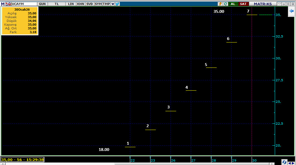 Üçay Mühendislik Enerji ve İklimlendirme Teknolojileri A.Ş., UCAYM.E işlem koduyla 22/01/2026 tarihinden itibaren (BUGÜN) Ana Pazar'da işlem görmeye başlayacaktır (Baz Fiyat: 18 TL; Maksimum Emir Değeri: 1.000.000 TL).