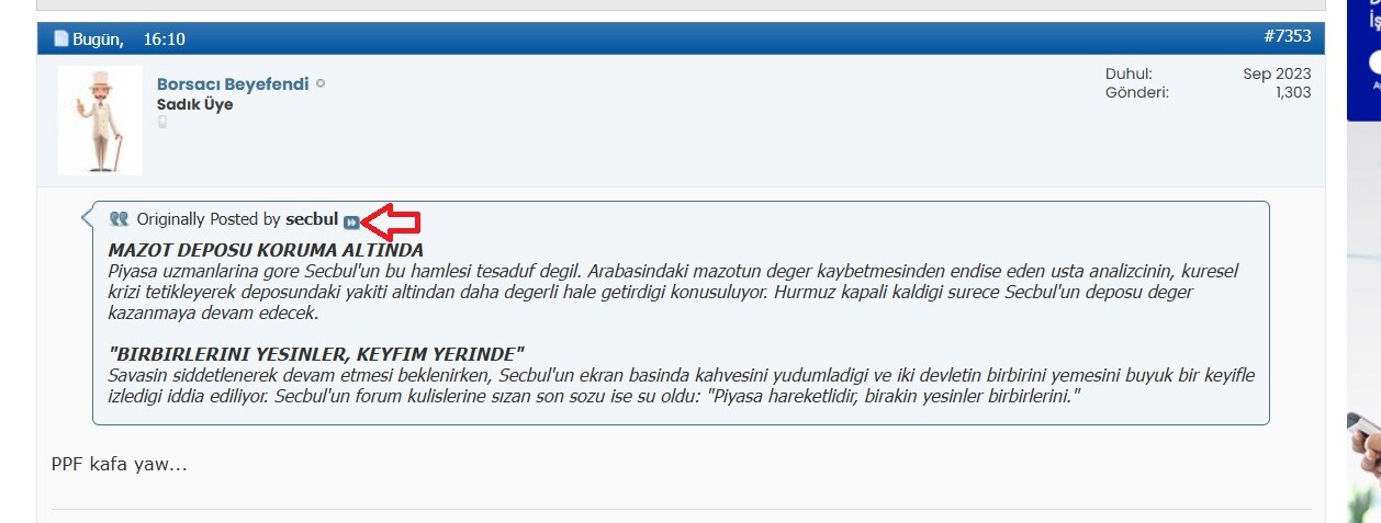 gönderinin içindeki alıntı yapılmış gönderiye gitmek için, ok işaretine basınca o gönderiye giderdi